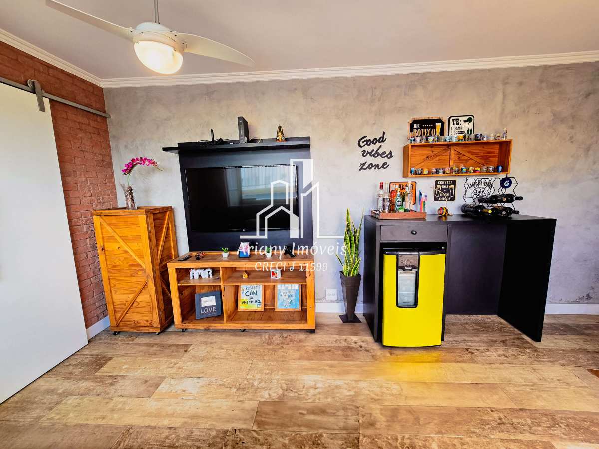 2° Pav.: Sala de tv, banheiro, quarto, amplo terraço gourmet coberto com piscina