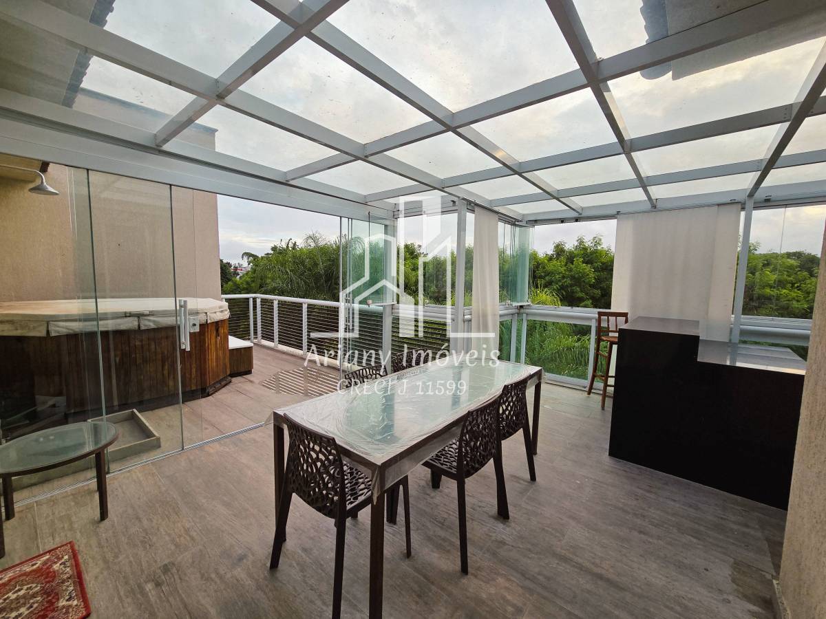 Sala em dois ambientes, cozinha com área de serviço, lavabo, amplo terraço com espaço gourmet coberto e hidromassagem