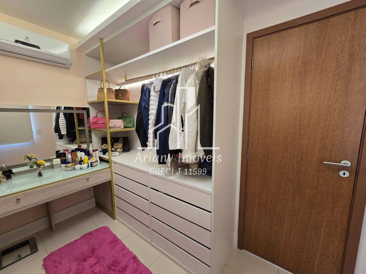 Área íntima composta por três quartos sendo duas suítes e banheiro social, suíte máster ampliada com dois closets