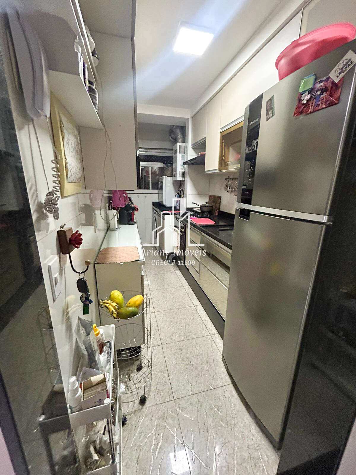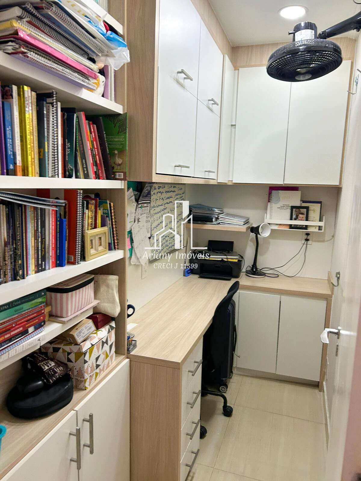 Sala ampliada em dois ambientes, varanda, cozinha com área de serviço, banheiro, escritório e dois quartos, sendo uma suite.