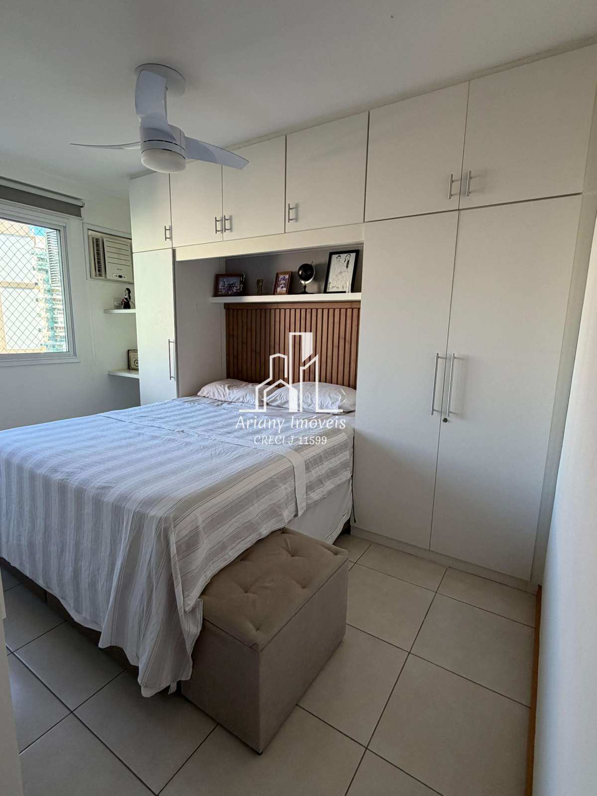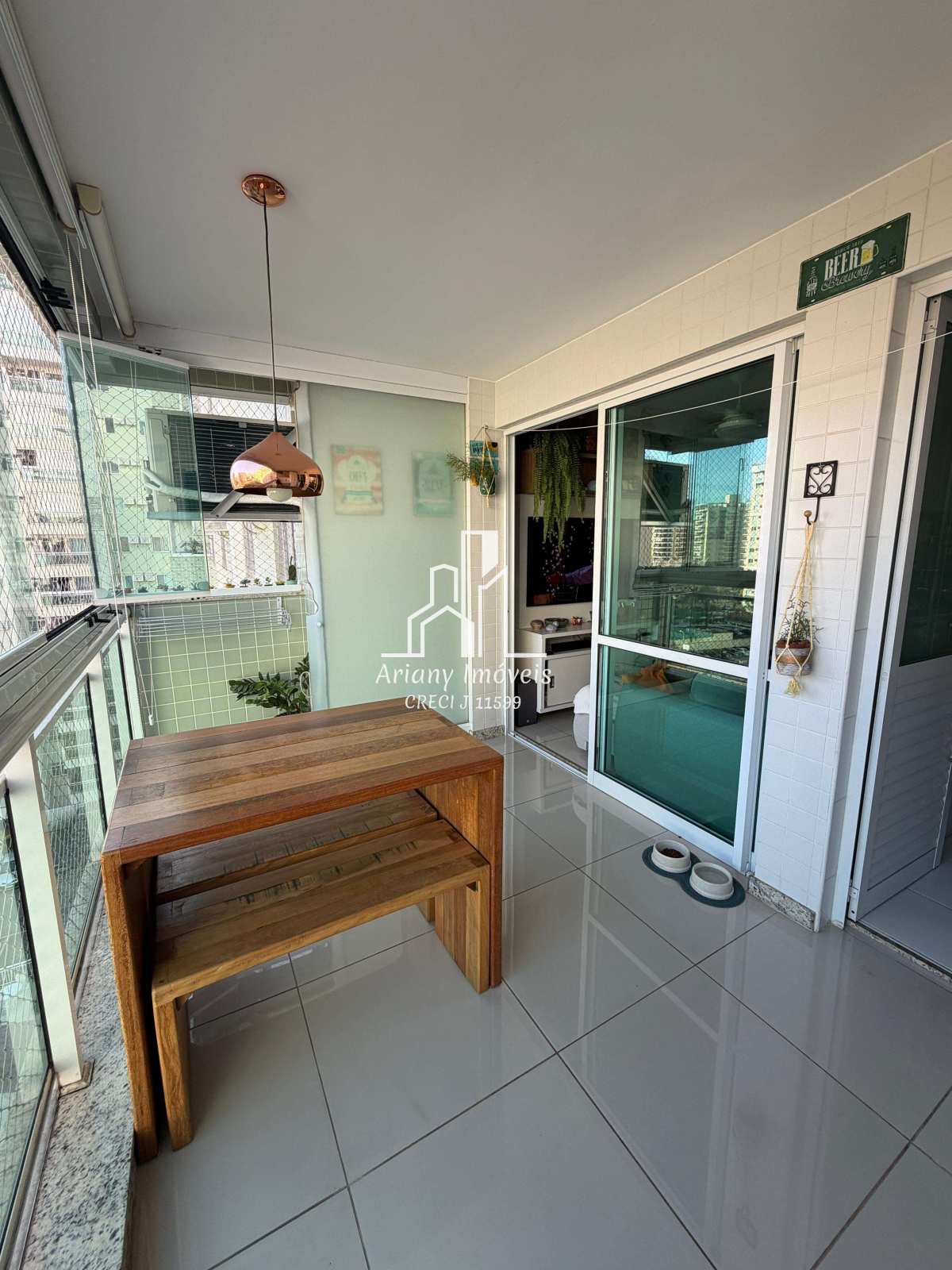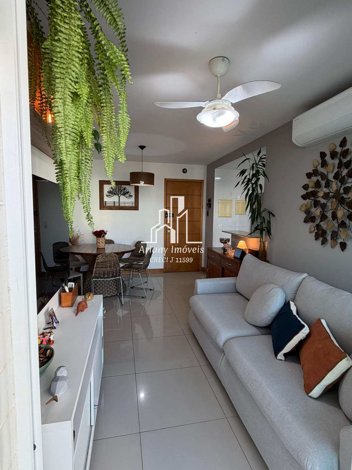 Sala ampliada em dois ambientes, varanda, cozinha com área de serviço, banheiro social e dois quartos, sendo uma suíte.