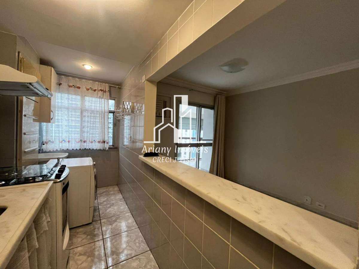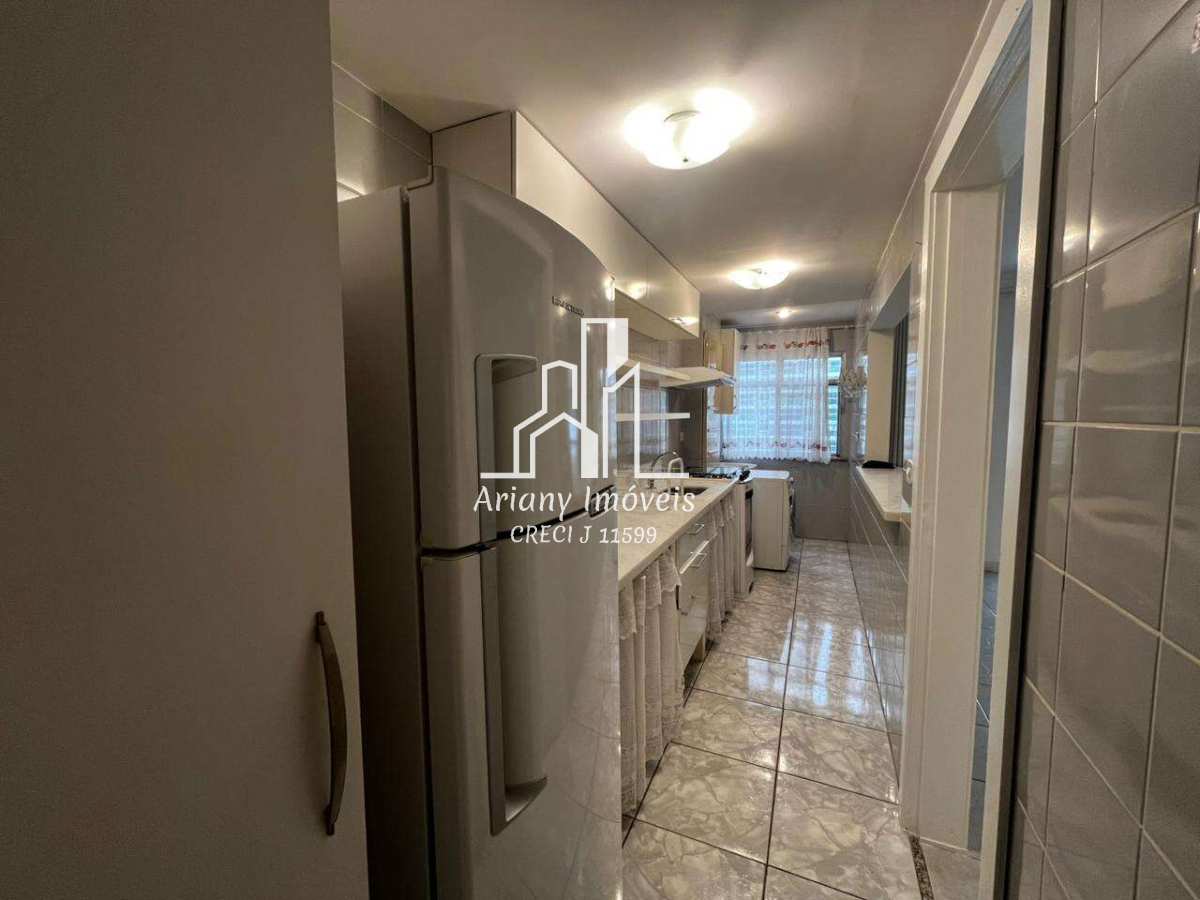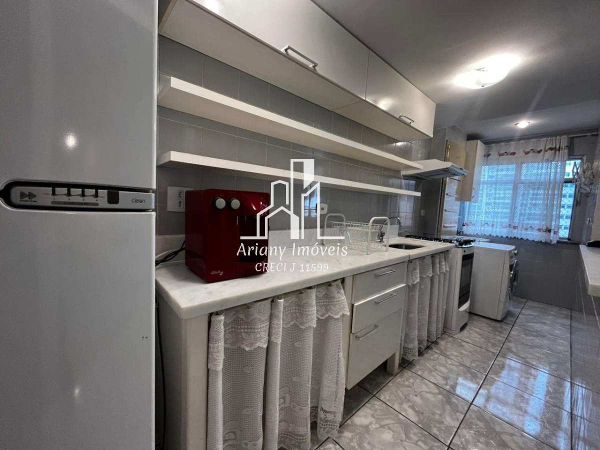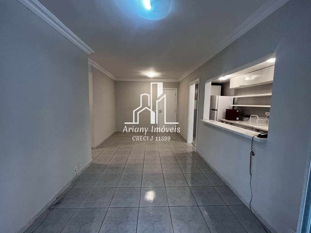 Sala ampla em dois ambientes, ampla varanda, cozinha com área de serviço, banheiro social e dois quartos, sendo uma suíte.