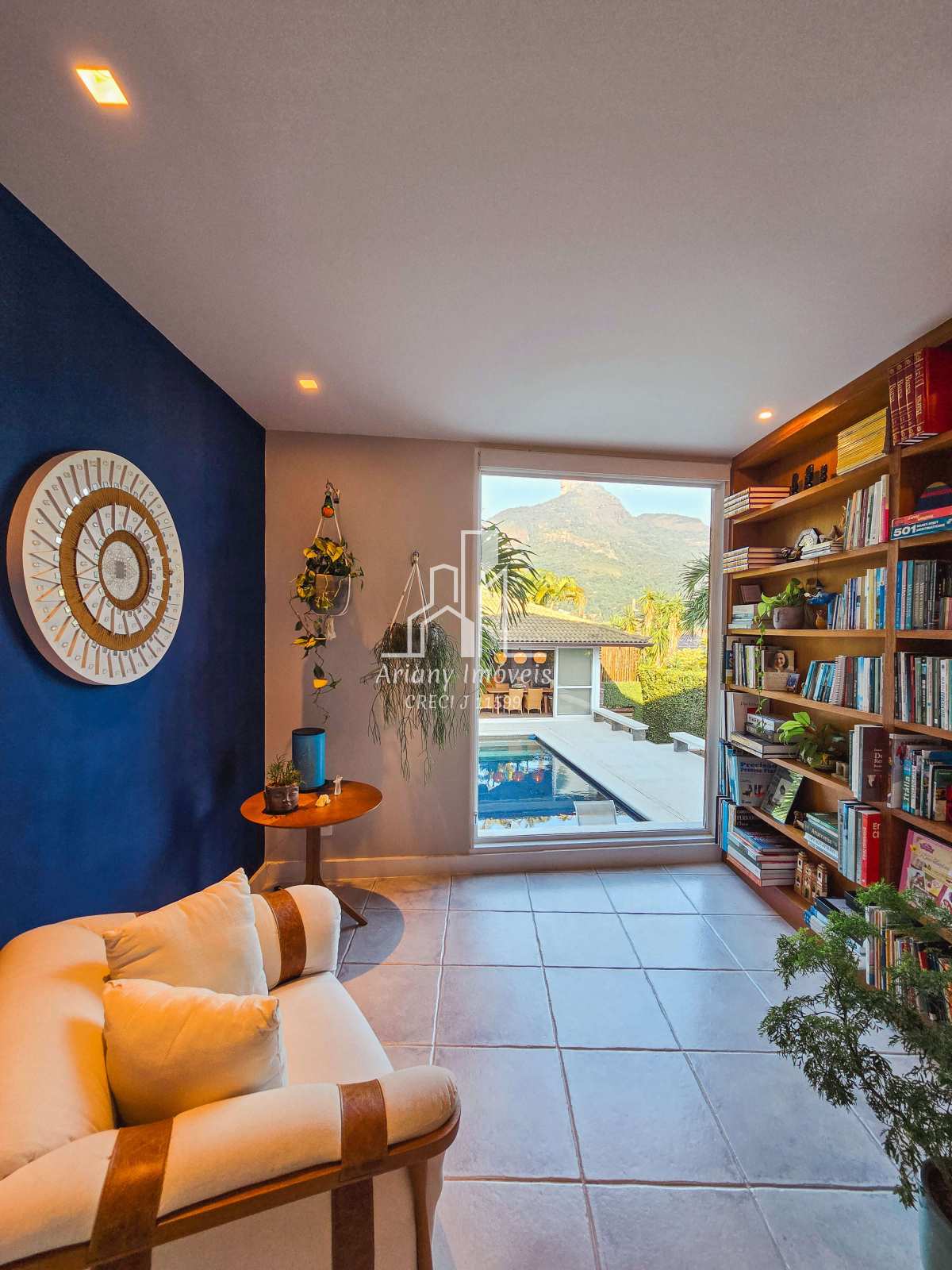 1º Pavimento: Hall de entrada, lavabo, sala de leitura, ampla sala de estar com lareira, projeto de som e iluminação, climatização por ar condicionado modelo split, dois ambientes destintos na varanda com vista livre para o mar e Pedra da Gávea, sala de Tv. E sala de jantar com acesso ao jardim.