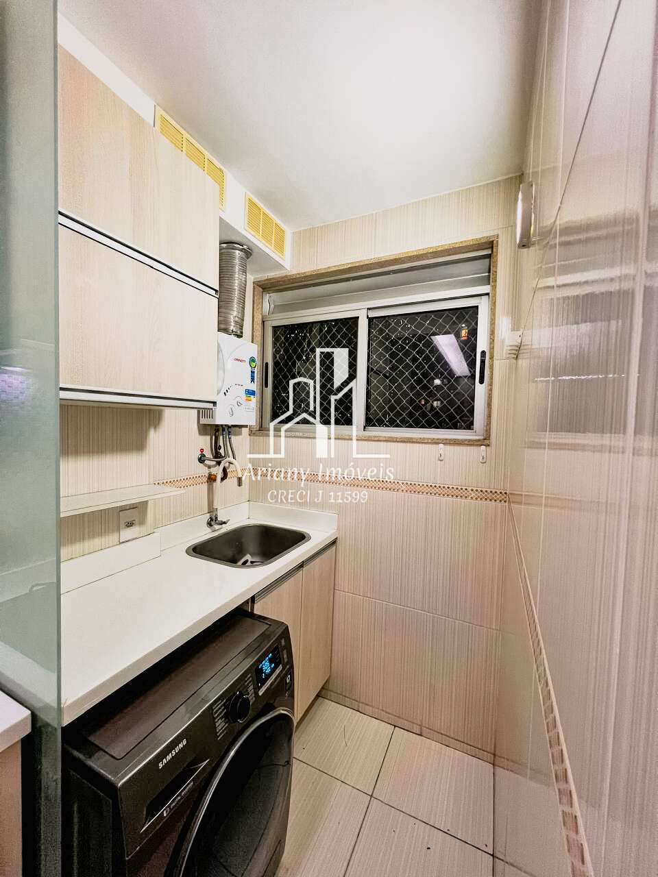 Sala em dois ambientes, varanda, cozinha com área de serviço, banheiro e dois quartos