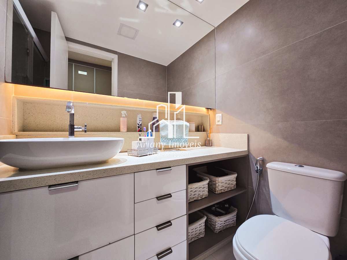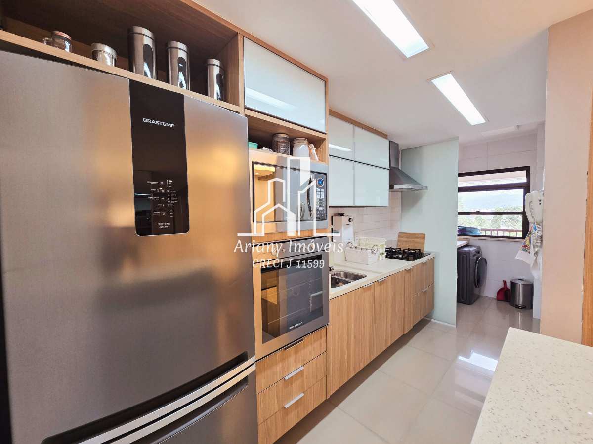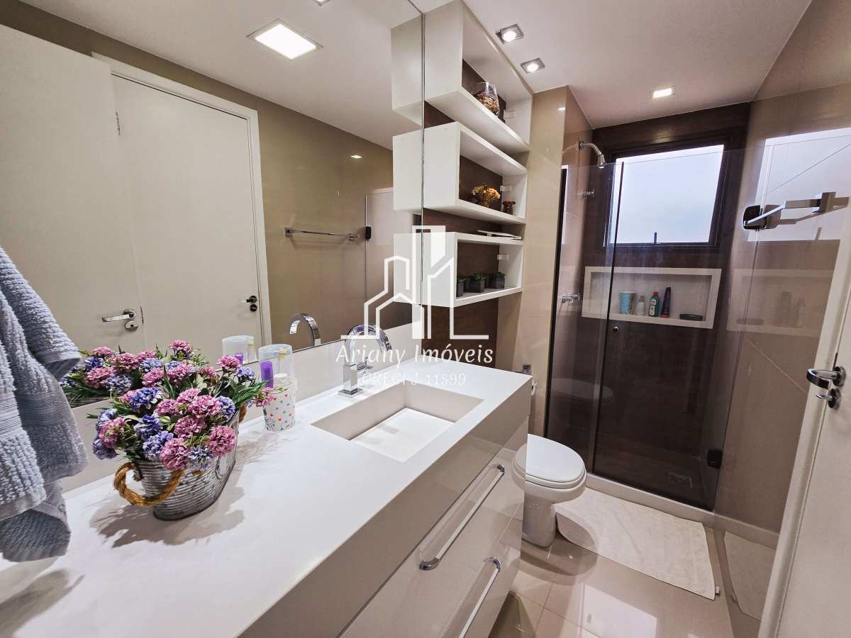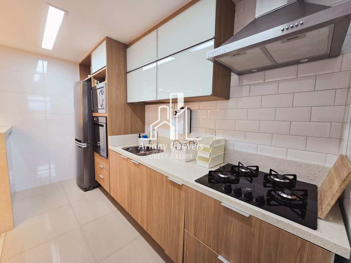 Sala em dois ambientes, varanda, cozinha integrada com área de serviço, lavabo e três suítes, sendo uma master com closet e duas canadenses.