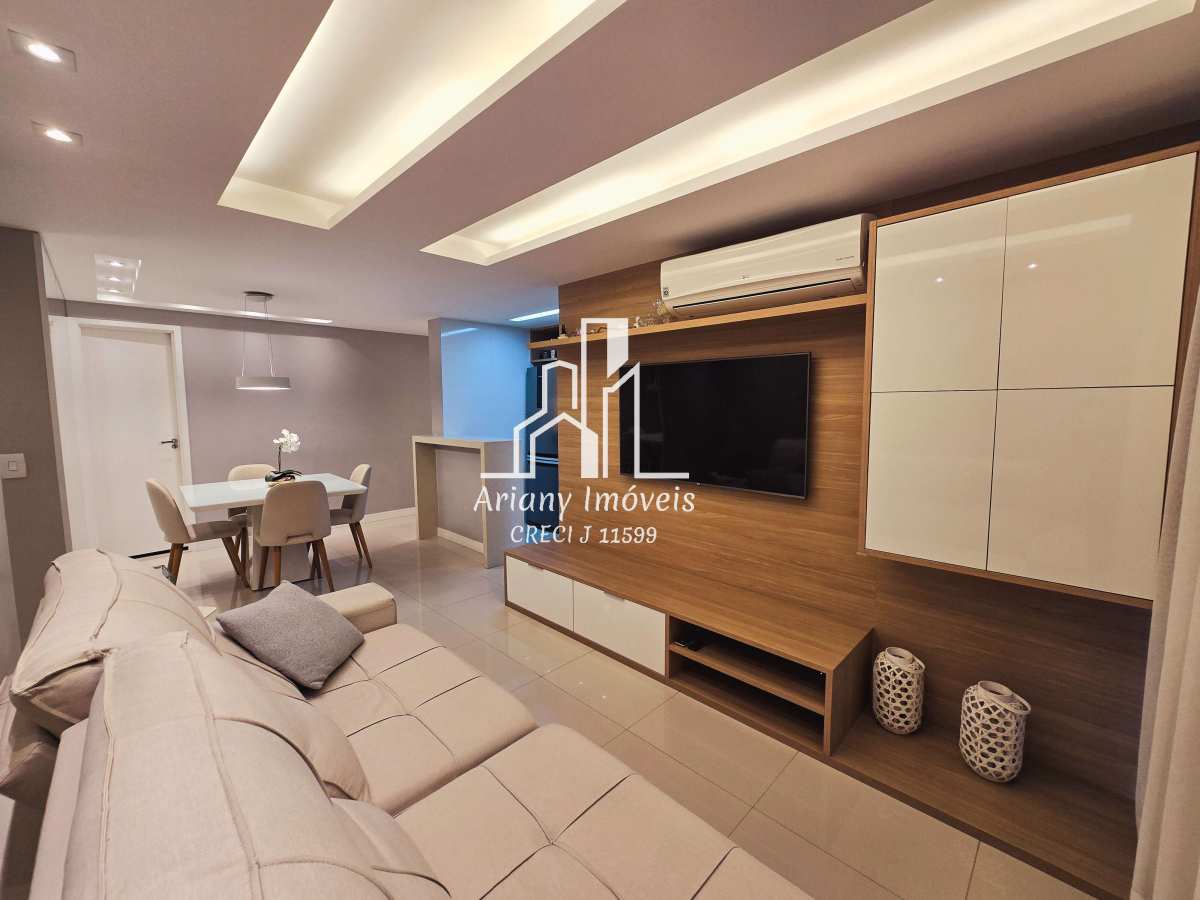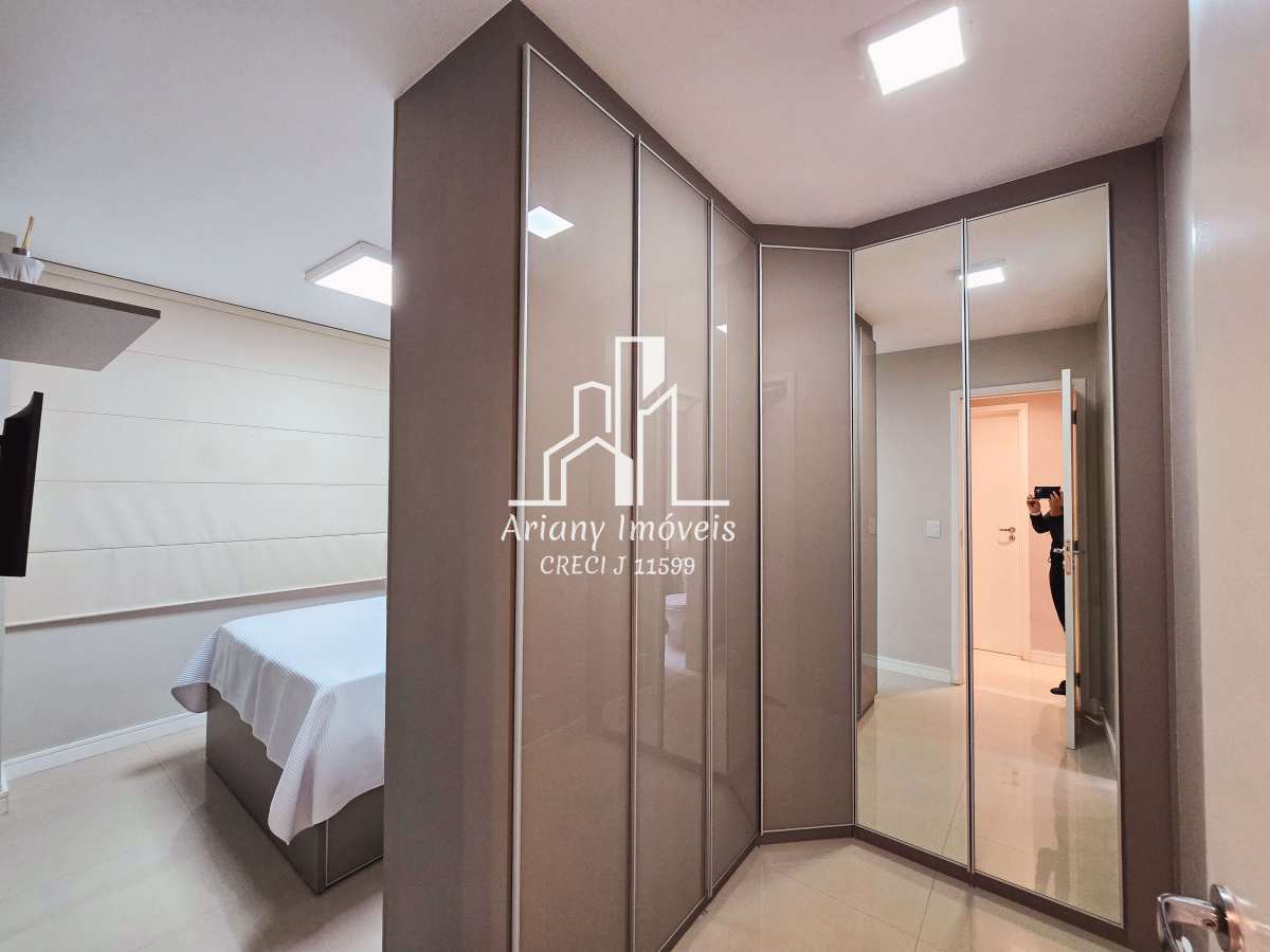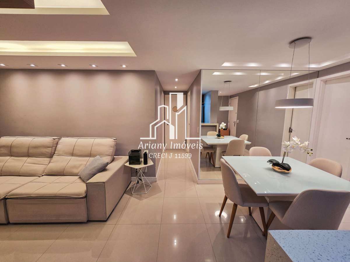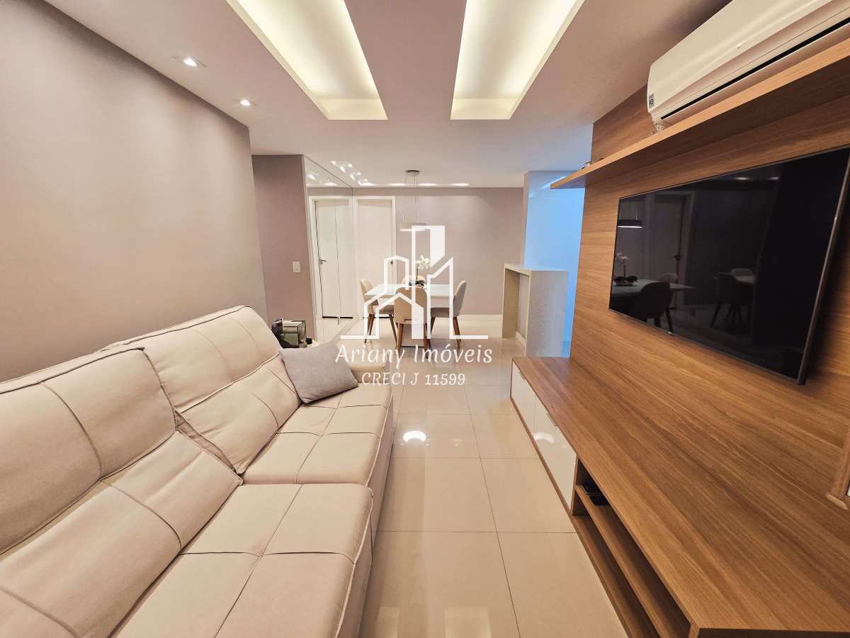 Sala em dois ambientes, varanda, cozinha integrada com área de serviço, lavabo e três suítes, sendo uma master com closet e duas canadenses.