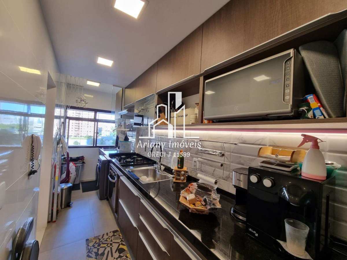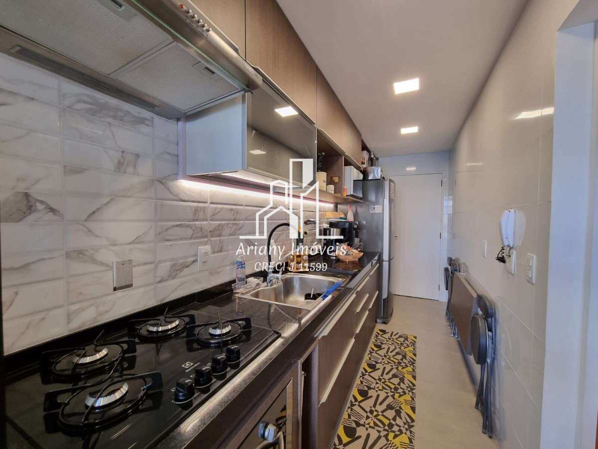 Sala ampliada em dois ambientes, ampla varanda, cozinha planejada, área de serviço, sendo uma suíte com closet