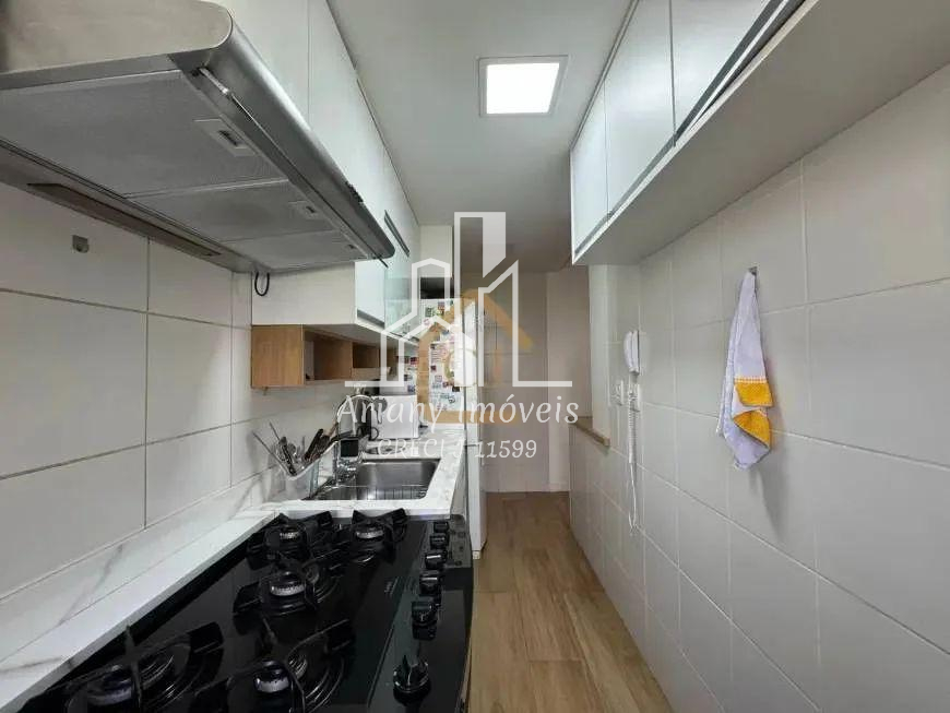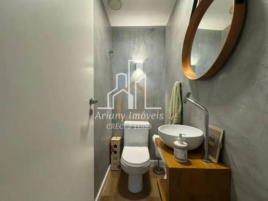 Sala ampla em dois ambientes, varanda gourmet, cozinha com área de serviço, lavabo, banheiro e três quartos, sendo uma suíte.