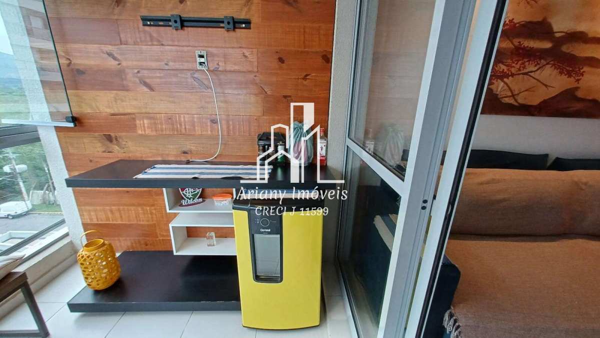 Sala ampla em dois ambientes, varanda gourmet, cozinha com área de serviço, dois banheiros e três quartos, sendo uma suíte com varanda.
