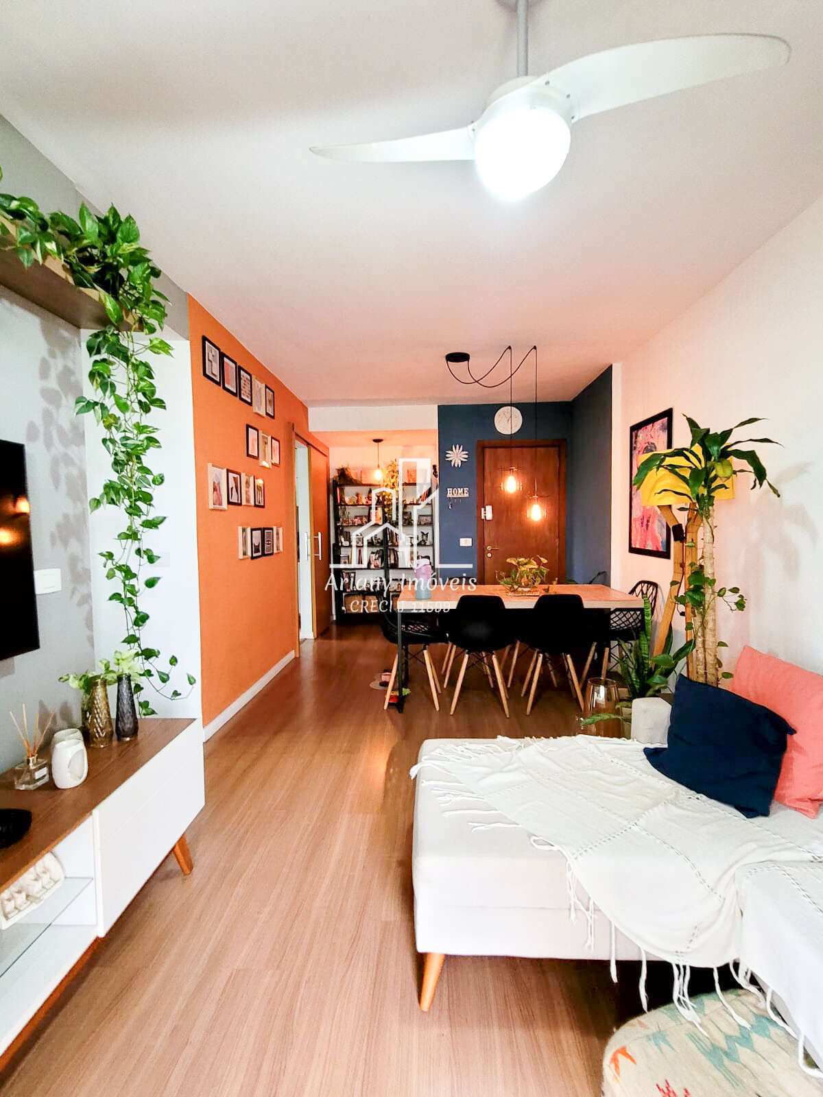 Sala ampla em dois ambientes, varanda, três quartos, sendo uma suíte, banheiro social, cozinha com área de serviço e despensa