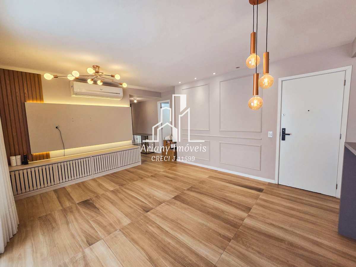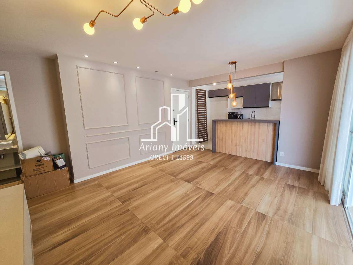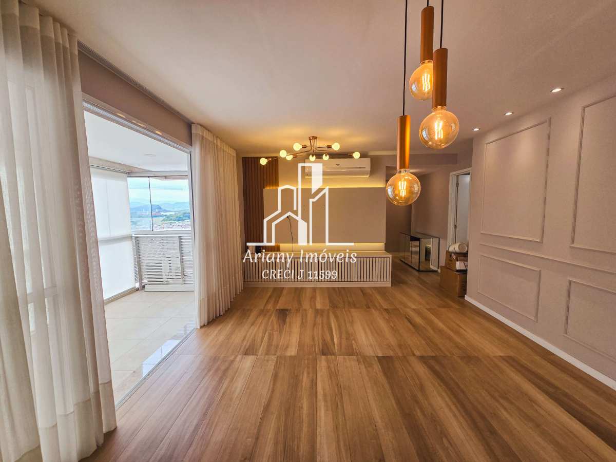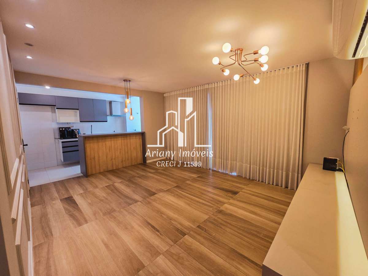 Sala ampla em dois ambientes, varanda, cozinha, área de serviço, lavabo e duas suítes sendo a máster com closet.