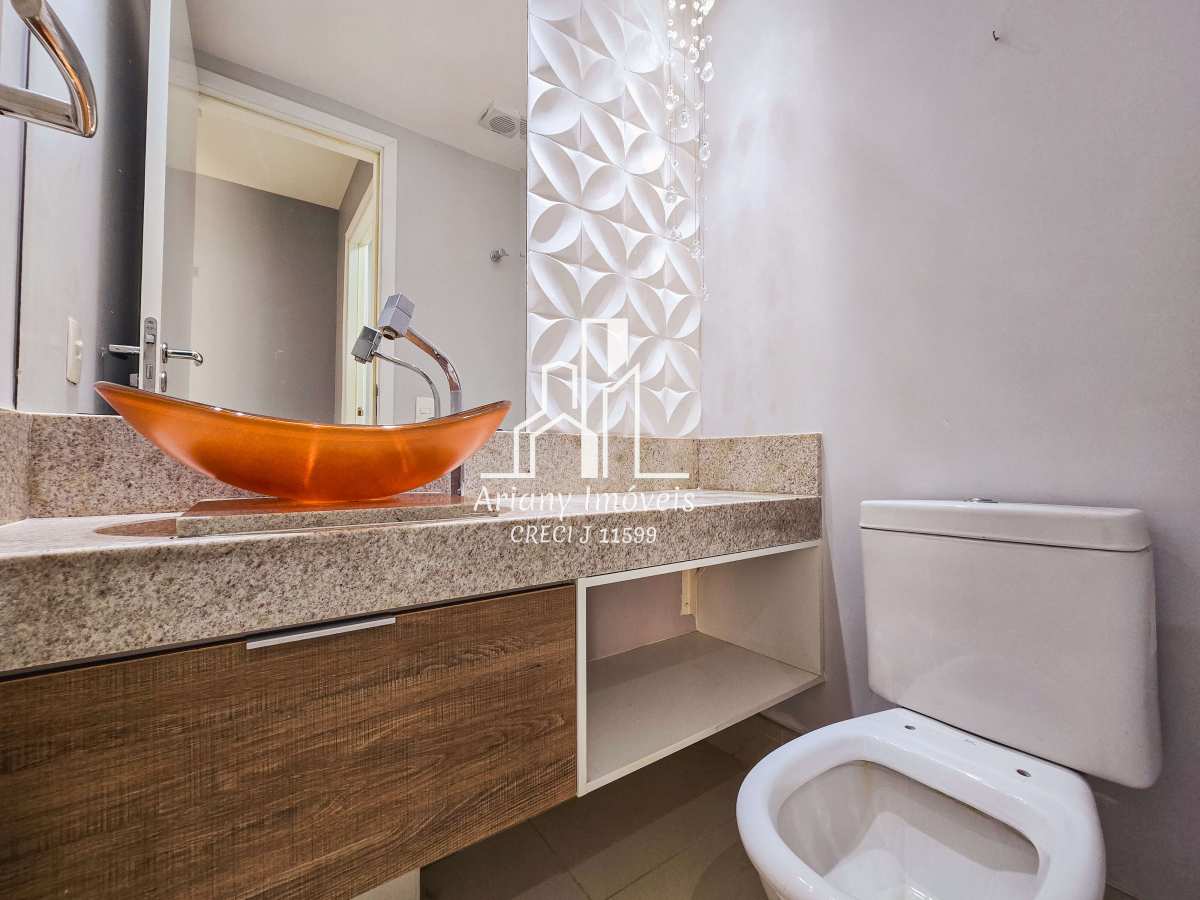 Sala ampla em dois ambientes, varanda gourme, cozinha em conceito aberto, área de serviço, lavabo e três suítes sendo a máster com closet.