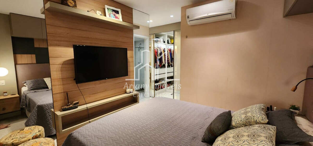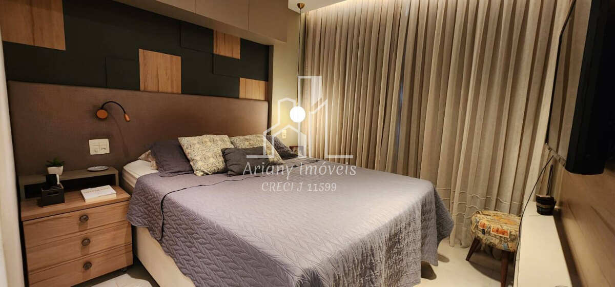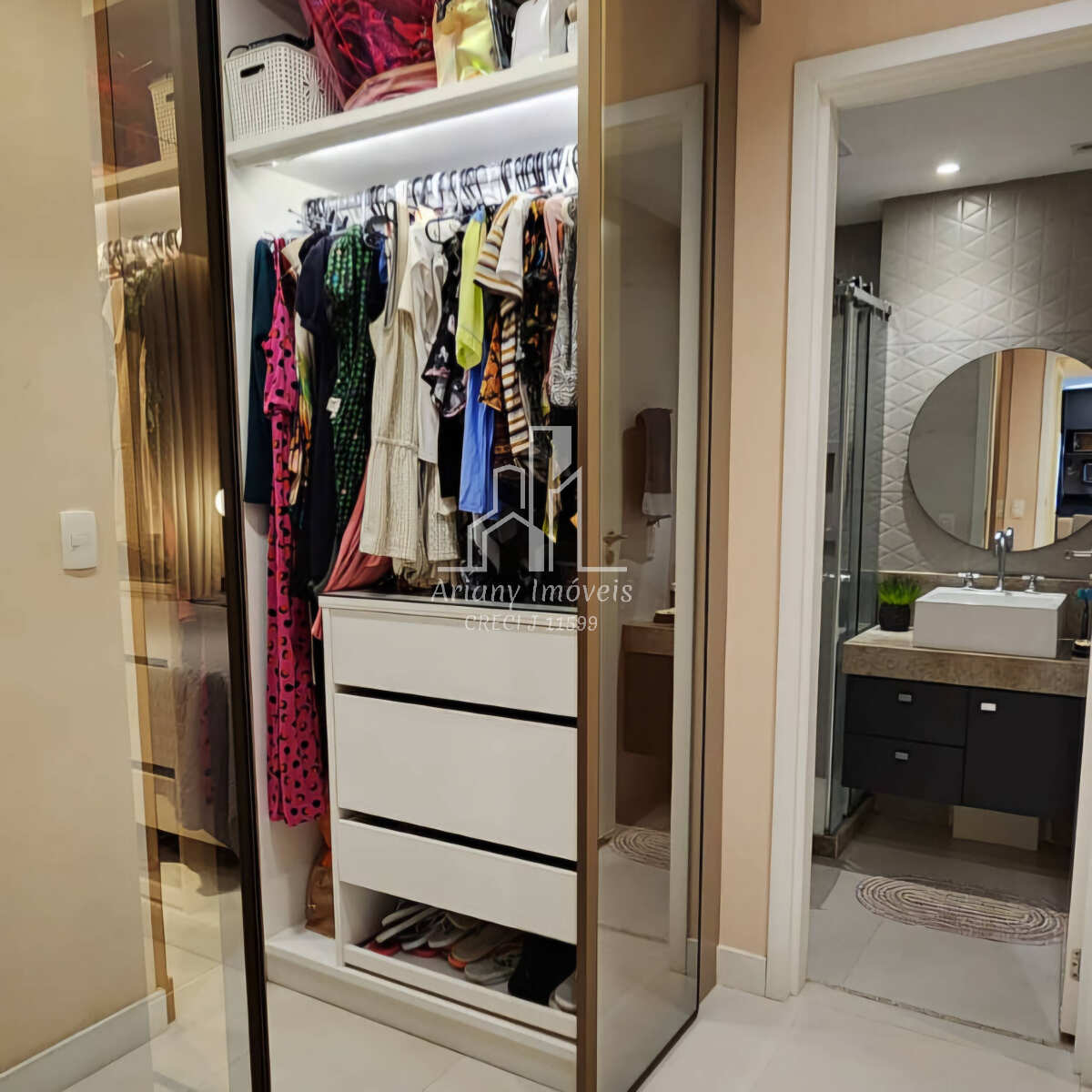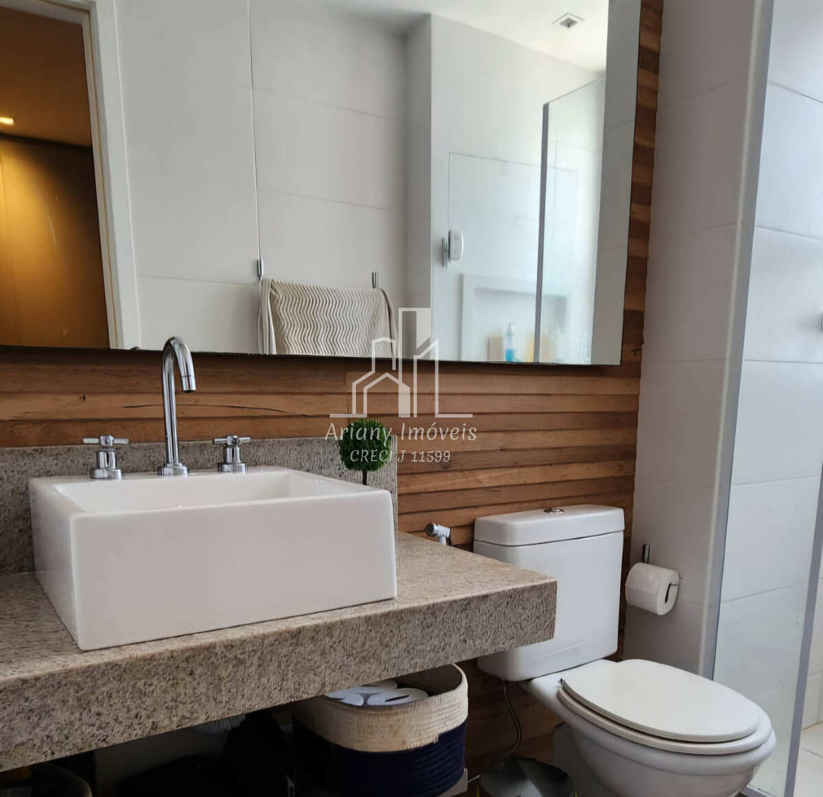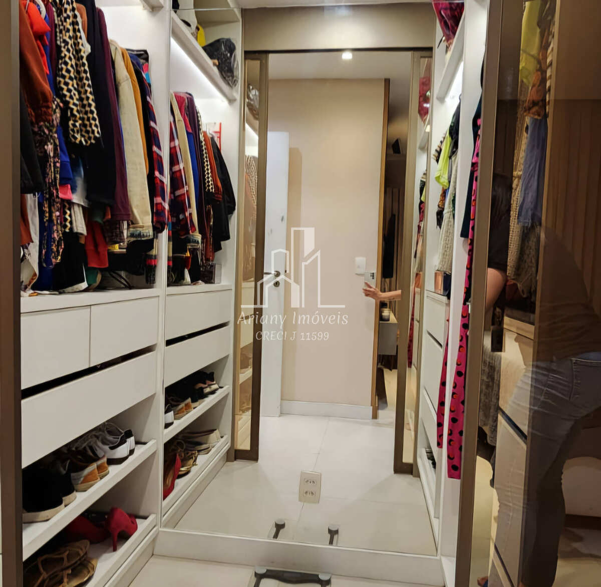 Sala ampla em dois ambientes, varanda, cozinha, área de serviço, lavabo e duas suítes sendo a máster com closet.