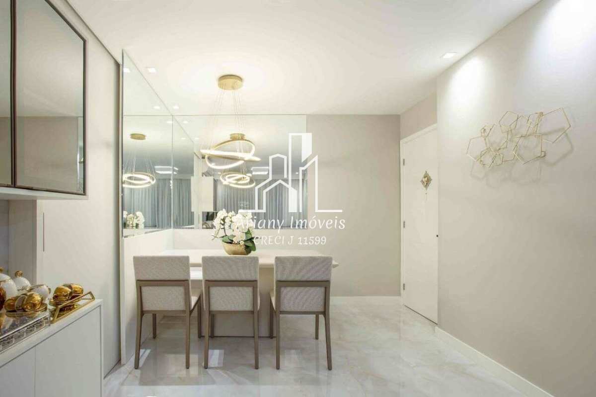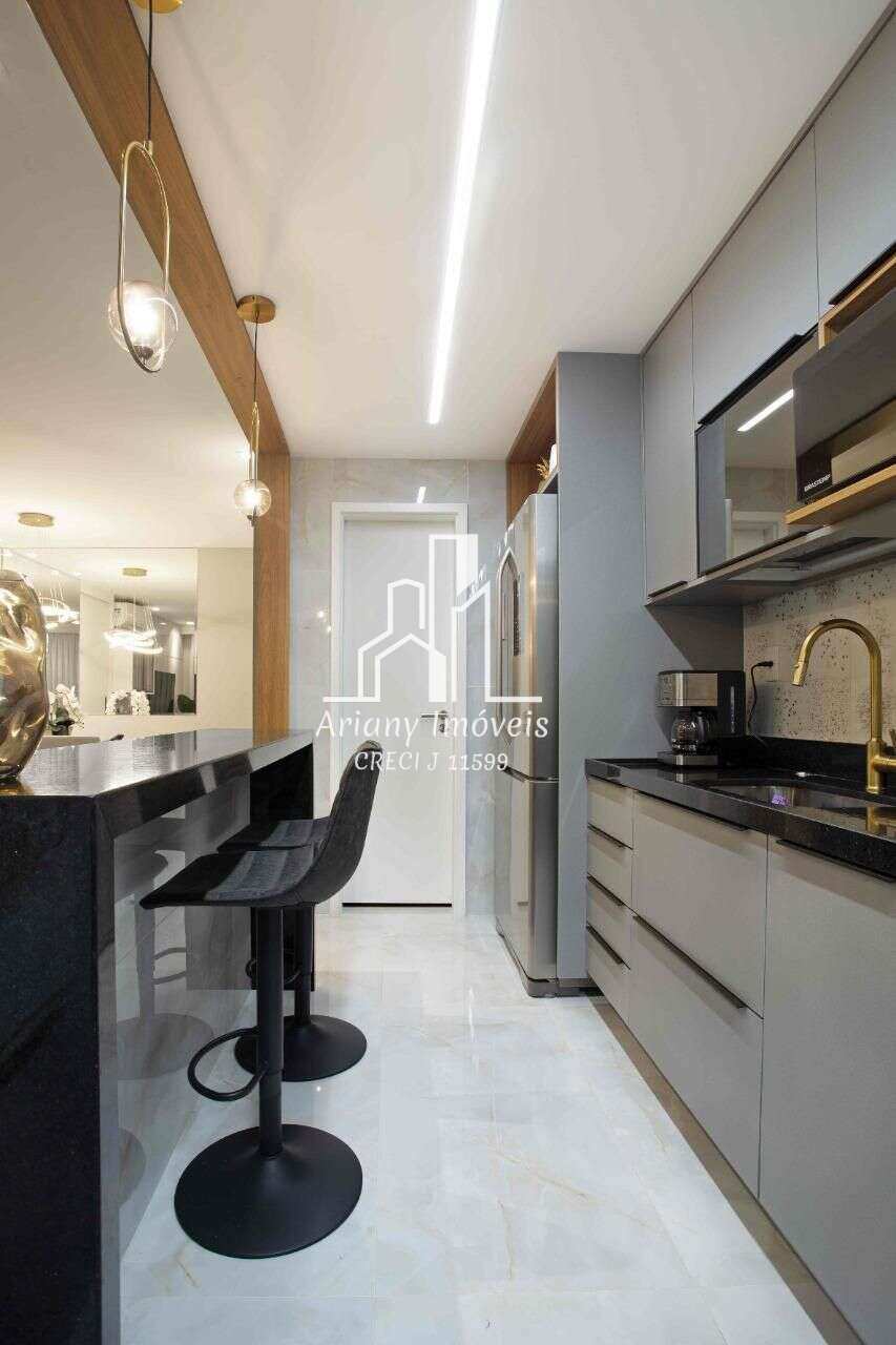 Sala em dois ambientes, varanda gourmet, cozinha com área de serviço, banheiro de serviço, banheiro social e dois quartos, sendo uma suíte.
